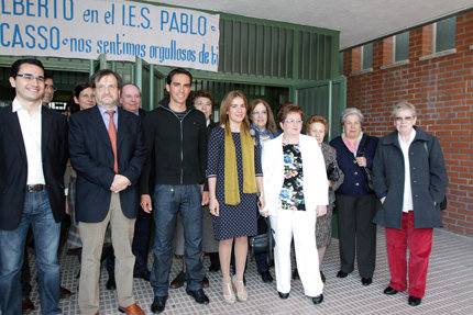 El ciclista Alberto Contador ha inaugurado en el Instituto de Educación Secundaria Pablo Picasso de Pinto, donde estudió, el aula que lleva su nombre y que han decorado los propios alumnos con recortes de prensa, fotos de las victorias del ciclista y mensajes de apoyo y cariño como "te queremos".