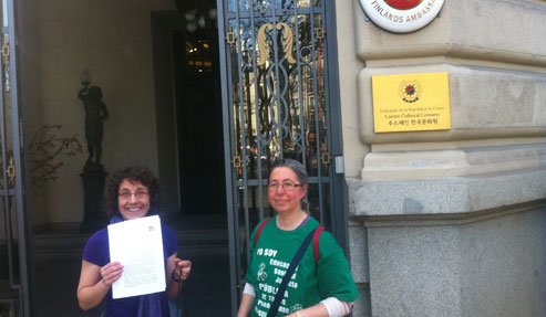 Representantes de las AMPA’s de los centros y de la Plataforma Ni 1 Cole Menos hicieron entrega de un documento en la embajada denunciando la situación. "La decisión ya no cuenta con ningún argumento válido, ni económico, ni organizativo, y es más, contraviene el propio decreto elaborado recientemente por la consejería de Educación que entre otras cosas, se supone que garantiza la libre elección de centro de los padres y madres. Los colegios que queremos son Verbena y Valle Inclán, el modelo educativo que queremos es el desarrollado en Leganés en las últimas décadas, y es precisamente ese modelo el que quiere desmantelar el PP, mientras favorece y aumenta las subvenciones de los centros privados y concertados", explican los padres afectados.