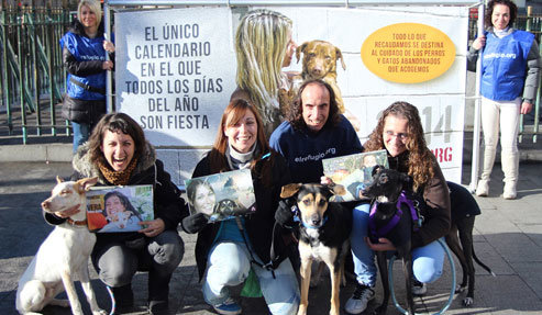 La protectora El Refugio ha presentado el único calendario del mundo en el que todos los días del año son fiesta. Un calendario creado con doce preciosas historias de esperanza y futuro, las de doce perros y gatos que en su día fueron abandonados y que hoy protagonizan los meses de 2014 junto a las personas que los han adoptado. Delfina, Tongo y Amelie, son los tres perros que han presentado “personalmente” el calendario junto a sus actuales adoptantes en la madrileña Puerta del Sol, para dar testimonio de que ahora en sus vidas cada día es una fiesta y que los oscuros días de soledad, maltrato y hambre quedaron desterrados para siempre.