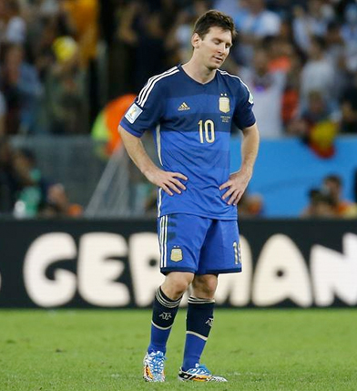 El delantero y capitán de Argentina, Lionel Messi, lamentó la falta de acierto de cara al gol de la albiceleste en la final del Mundial 2014 este domingo ante Alemania, lo cual condenó a su equipo, al tiempo que calificó de "triste premio" el 'Balón de Oro' de Brasil 2014 con el que fue galardonado.