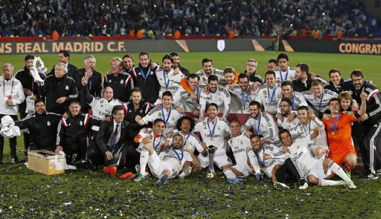 El Real Madrid se proclamó este sábado campeón del mundo tras derrotar a San Lorenzo de Almagro (2-0) en una final sin historia, dominada de cabo a rabo por los merengues, y que decidió los goles de Sergio Ramos y Gareth Bale, al final de la primera mitad y al comienzo del segundo acto en lo que fue la vigésimo segunda victoria consecutiva de los de Ancelotti.