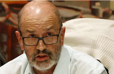 El concejal de Deportes de Rivas Vaciamadrid, Raúl Sánchez, padre de la candidata de IU a la Presidencia de la Comunidad de Madrid, Tania Sánchez, comparece este martes en la comisión de investigación del Ayuntamiento para informar sobre las adjudicaciones a la cooperativa Aúpa, en la que participaba su hijo, Héctor Sánchez.