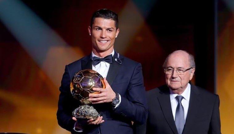 El jugador portugués del Real Madrid Cristiano Ronaldo ha conquistado el FIFA Balón de Oro, en la gala anual que el máximo organismo del fútbol mundial ha organizado en Palacio de Congresos de Zúrich (Suiza), tras imponerse a los otros dos nominados, el argentino Leo Messi, segundo, y el alemán Manuel Neuer, tercero, por lo que el luso alza por tercera vez el galardón.