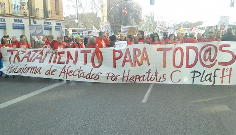La Plataforma de Afectados por la Hepatitis C (PLAFHC) ha convocado para este domingo la 'Marcha a las Cortes', que ha llegado hasta el Congreso de los Diputados, para exigir que todos los pacientes con esta enfermedad tengan acceso a los nuevos medicamentos orales de última generación y que el Gobierno cree una partida presupuestaria específica para pagarlos.