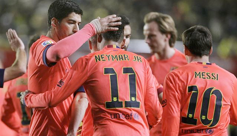 El FC Barcelona alcanzó la final de la Copa del Rey este miércoles gracias a una victoria con lo justo y mucha pegada (1-3) en el duelo de vuelta de semifinales en El Madrigal, un triunfo que contó de nuevo con el olfato del tridente culé --dos de Neymar y uno de Suárez-- liderado por la imaginación de Leo Messi, pero que castigó en exceso a otra gran puesta en escena del Villarreal.