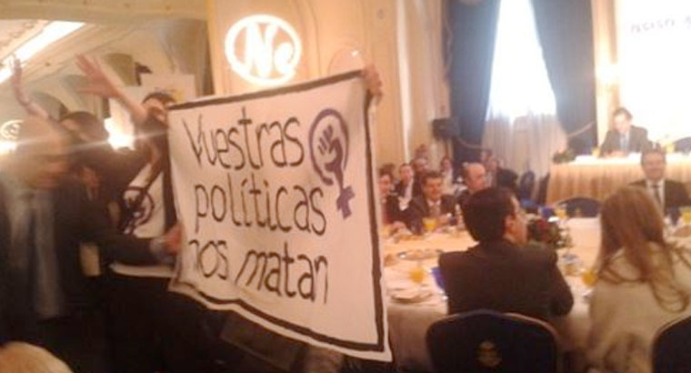 Feministas increpan a Alonso al grito de "Vuestras políticas nos matan"