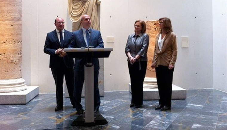 Durante su visita a Cartagena, Wert ha felicitado al consejero de Cultura, Pedro Antonio Sánchez, "por este magnífico museo" y ha asegurado que "de los escenarios en los que he hablado, éste es el más inspirador".