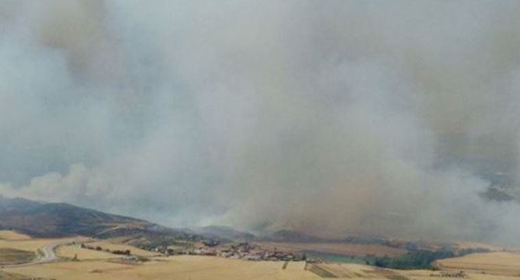 Vecinos de varias localidades han tenido que ser desalojados por el incendio que podría haber sido originado por una cosechadora que se encontraba trabajando cerca del río, y ha afectado a una zona boscosa de matorral, encinas y enebro rojo