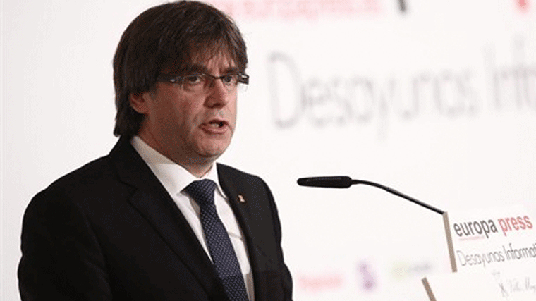 Puigdemont ha ofrecido una conferencia en los desayunos informativos de Europa Press, en los que ha insistido en que la reivindicación independentista catalana requiere una solución política y no va a diluirse por no darle respuesta.