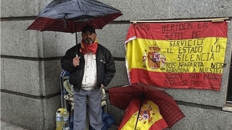 Merino, que es padre de seis hijos, llevaba una semana acampado frente a Defensa para reclamar que el ministerio le reconociera que su incapacidad deriva de lesiones producidas en acto de servicio por un accidente de tráfico que sufrió cuando estaba desplegado en Afganistán en 2004.