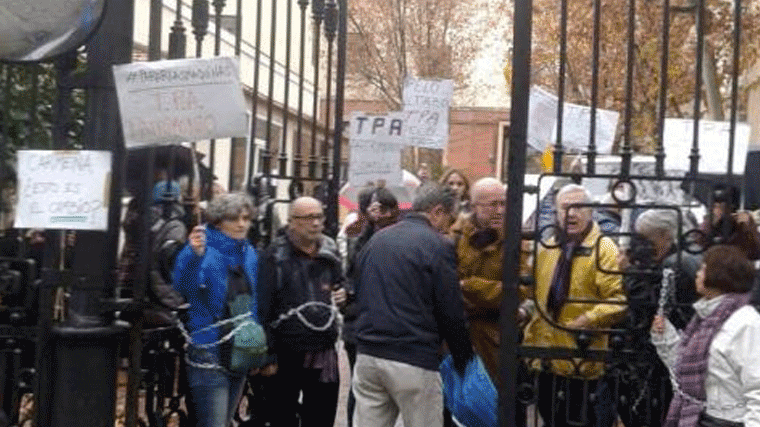 Un grupo de vecinos se ha encadenado este viernes a las puertas del edificio del antiguo Taller de Precisión de Artillería para protestar contra el proyecto urbanístico que supondrá el derribo del inmueble para construir "viviendas de lujo", según argumentan.