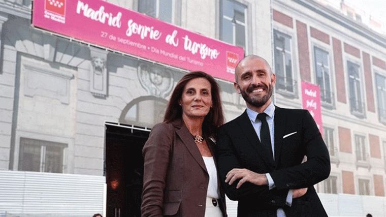 De los Santos, que tomó ayer posesión de su cargo, ha asistido esta mañana en la Real Casa de Correos al despliegue de la lona con este lema con el que la Comunidad de Madrid ha querido unirse a la celebración del Día Mundial del Turismo. Durante el acto, De los Santos ha estado acompañado de la nueva directora general de Turismo, Marta Blanco Quesada.