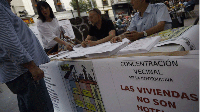 Según la FRAVM, en el centro de la capital, concentra el 25 por ciento de todos los pisos turísticos registrados en la Comunidad de Madrid, pero, según la asociación vecinal de este barrio, solo una de cada cuatro viviendas que tienen este uso está oficialmente registrada