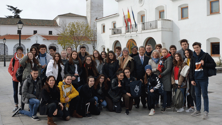 El alcalde, Luis Partida, ha recibido en la Casa Consistorial a un grupo de alumnos y profesores de Secundaria del Liceo Alain de Le Vésinet, municipio francés hermanado con Villanueva de la Cañada desde el año 2006. Esta visita se enmarca en un programa de intercambio de estudiantes con el IES Las Encinas, que cuenta con el apoyo del Ayuntamiento y de la Asociación Cultural de Hermanamientos.