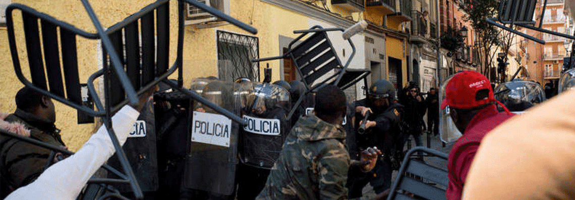 Los atacantes emplearon, entre otros objetos, sillas de las terrazas de bares de la zona que lanzaban a los agentes. El cónsul de Senegal, Mouctar Belal BA, se tuvo que resguardar en un bar hasta que fue escoltado por los agentes hasta su coche. Los presentes le criticaron que no se hubiera acercado antes al barrio a preocuparse por lo ocurrido con el ciudadano fallecido.