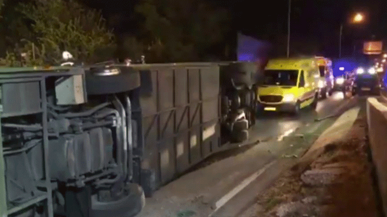 Heridas 20 personas, una grave, al volcar un autobús en la A-1