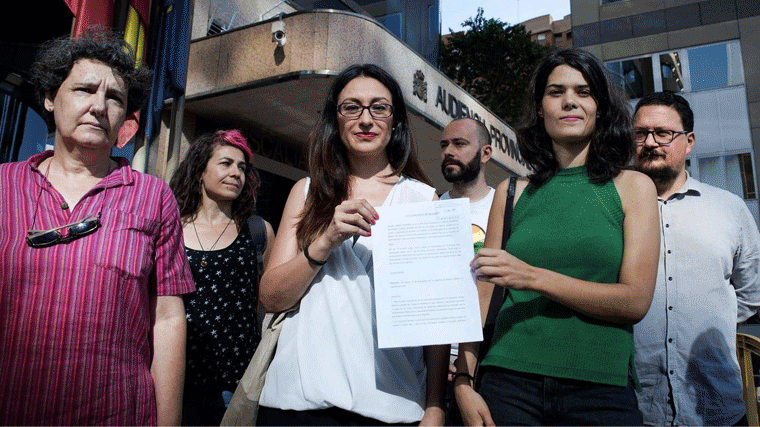 Las representantes de ambas formaciones inciden enel texto presntado en el posible "delito de odio" contra el colectivo LGTB en el que habría incurrido, a sus ojos, la formación de Rocío Monasterio