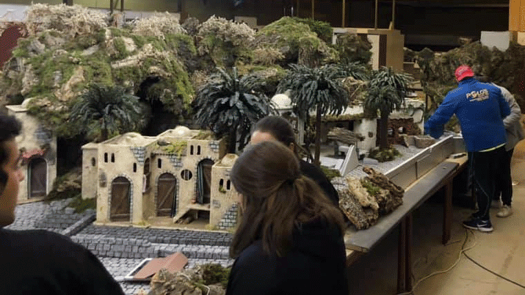 "Es un enorme proyecto escenográfico que ha requerido un esfuerzo inmenso. Estas medidas nos han obligado a trabajar muchas horas, para lo que hemos tenido que dividirnos en dos grupos de tarde y noche sólo para montar la estructura general", ha señalado el presidente de la Asociación de Belenistas, José María Esteban.