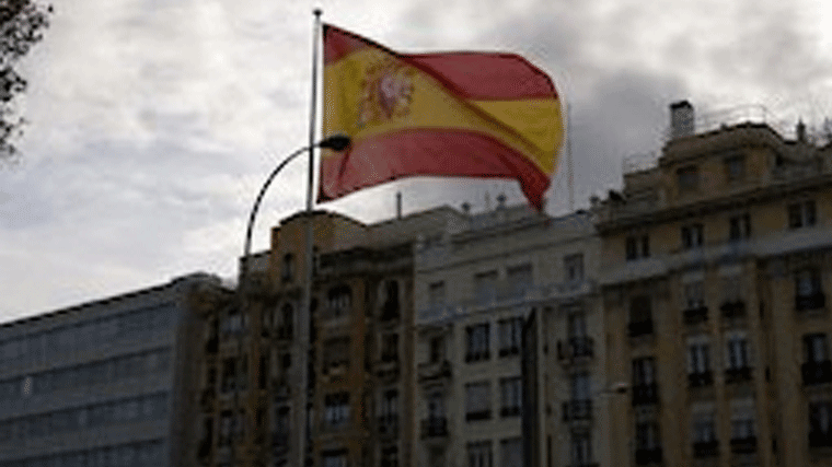 Nueva bandera de España gigante de Almeida, está en la Plaza de Chamberí