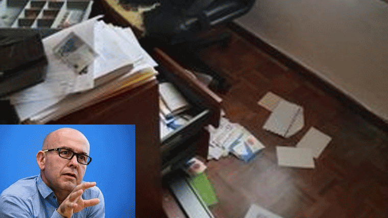 Boye no echa de menos documentos ni otros enseres, pero ha denunciado el destrozo de cables, mobiliario y material informático como su servidor, y así lo ha denunciado en la red social Twitter, donde ha colgado fotografías del estado en el que se ha encontrado el despacho esta mañana.