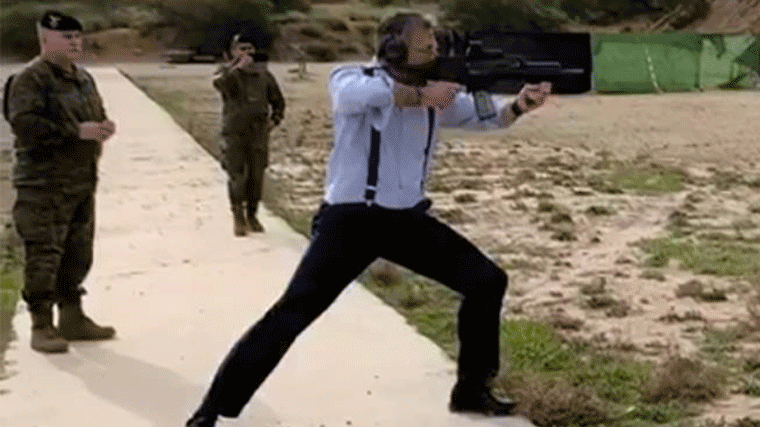 Un vídeo muestra al secretario general y diputado de Vox disparando un fusil en una base militar en Murcia y contando después los disparos que habían hecho blanco. "Este es un hijo de puta del Daesh que había que cargárselo", dice al comprobar su puntería.