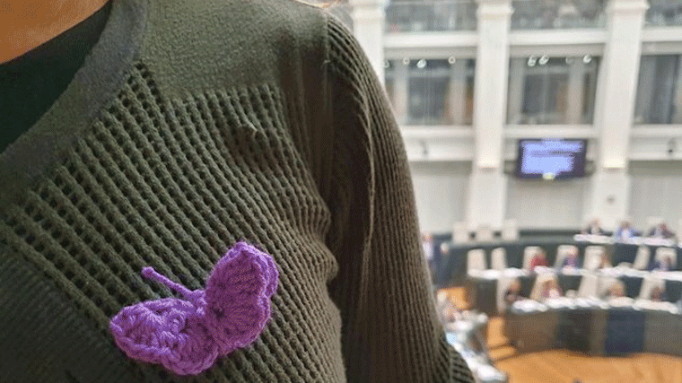 Ya la lucen ediles de otras formaciones aunque, como apuntan en Más Madrid, la única concejala que no se ha puesto la mariposa morada ha sido la de Vox, Aránzazu Cabello