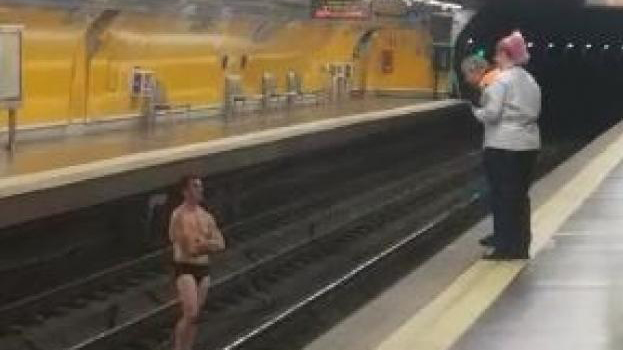 El suceso tuvo lugar ayer, cuando el hombre, tras charlar con el vigilante ya en ropa interior, decide bajar a las vías y consigue paralizar la circulación. Se encontraba "enajenado" y "un poco violento", en palabras del vigilante que trata de retener su impulso de saltar.