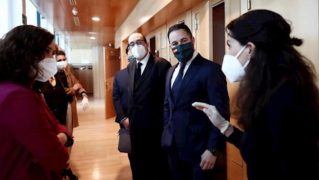 Fuentes de Vox, han indicado que Santiago Abascal ha acudido a la Asamblea a apoyar a su equipo "fundamental para sostener al Gobierno de la Comunidad más afectada por la pandemia frente al ataque del Ejecutivo socialcomunista de La Moncloa".