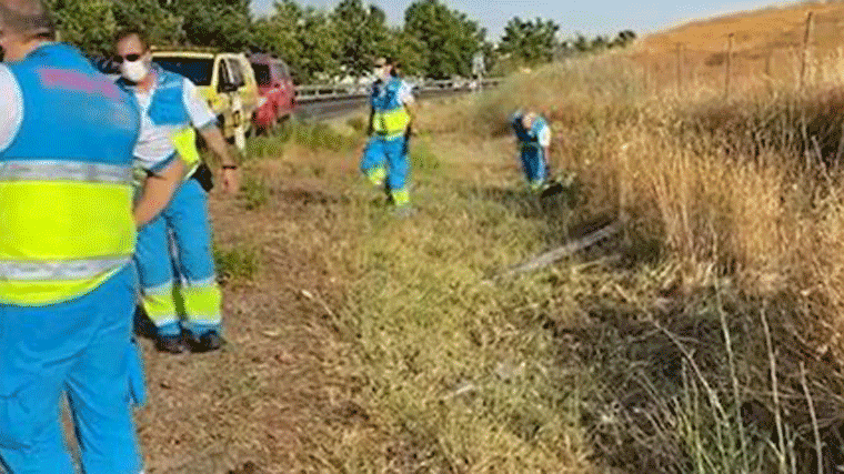 El primer aviso a los servicios de emergencia se ha producido a las 8.15 horas cuando se recibe una llamada alertando de la presencia de dos cuerpos tirados en una cuneta en esta carretera.