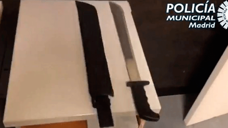 Y entonces encontraron a estas dos personas dos machetes de 46 centímetros, cuyo uso es ilegal, pegados con cinta aislante en el pantalón. Todo en esta zona del distrito de Ciudad Lineal con gran aglomeración de gente y peligro para la integridad física. Por ello, fueron arrestados.