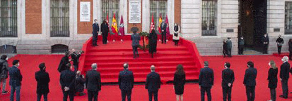 Los encargados de depositar la corona bajo la placa que homenajea a las víctimas han sido la presidenta del Gobierno regional en funciones, Isabel Díaz Ayuso, y el alcalde de la capital, José Luis Martínez-Almeida.