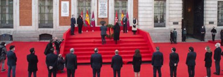Al tiempo han sonado durante cinco minutos las campanas de la Real Casa de Correos. El acto ha cerrado con el himno nacional.