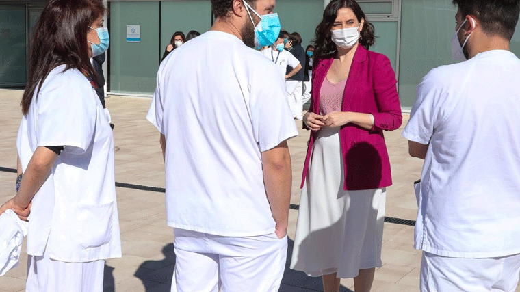 La presidenta de la Comunidad de Madrid, Isabel Díaz Ayuso, ha anunciado que en la nómina del mes de mayo de los sanitarios se incluirá el 100% del complemento de productividad.