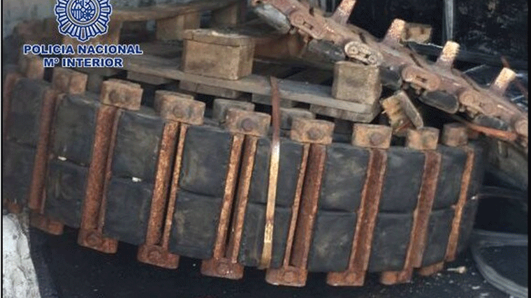 Cuando los policías pidieron a sus ocupantes que les mostrasen el interior de las mismas para comprobar lo que transportaban, descubrieron que iban cargadas con cadenas tipo oruga, de grandes dimensiones, utilizadas habitualmente en vehículos tipo tanque o excavadoras.
