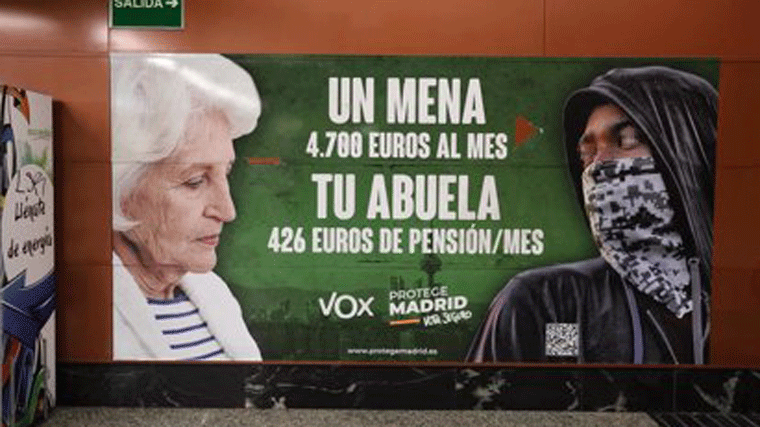 La Asociación Ciudadanía Progresista 'Progresa' ha presentado un escrito de personación como acusación popular en la causa que instruye el Juzgado de Instrucción número 53 de Madrid contra Vox por el cartel electoral en el que se compara la pensión de jubilación con el coste mensual destinado a los menas.