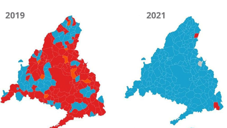 La victoria del Partido Popular en las elecciones autonómicas de este martes se ha extendido por todo el mapa de la Comunidad de Madrid, incluidos los municipios del sur, tiñendo de azul el clásico 'cinturón rojo', caladero de votos del Partido Socialista.