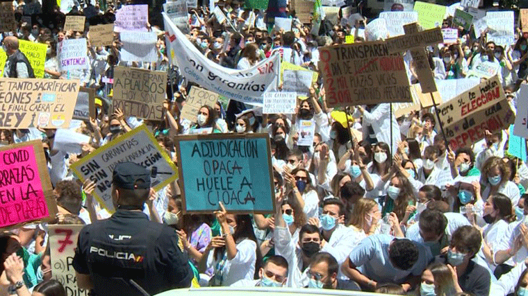 Más de mil aspirantes MIR se concentran contra la adjudicación telemática de las plazas