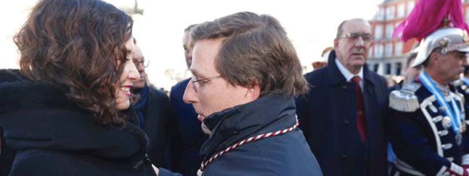 La presidenta de la Comunidad de Madrid, Isabel Díaz Ayuso, y el alcalde de la capital, José Luis Martínez-Almeida, se han saludo afectuosamente a su llegada a la Plaza de la Almudena, frente a la catedral homónima, donde han sido recibidos con aplausos por los madrileños congregados con motivo del día de la patrona.