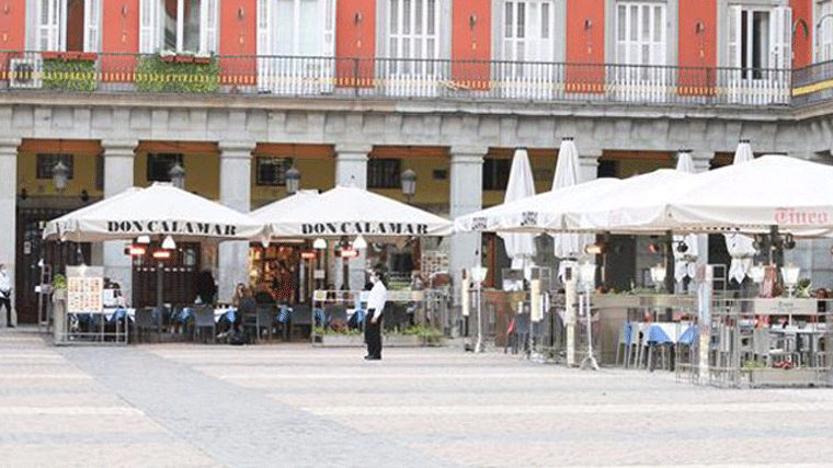 Bares y restaurantes de la Plaza Mayor de Madrid protagonizan un apagado de luces simbólico como protesta ante la situación de "extrema" gravedad que atraviesa el sector debido al alza de precios de la electricidad y el gas.