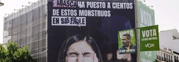 Sin embargo, esta mañana en la lona se podía leer: "Abascal ha puesto a cientos de estos monstruos en sus filas". Esta acción ha sido llevada a cabo por un grupo de activistas denominado 'Violetas', según han publicado este miércoles diferentes usuarios en Twitter.
