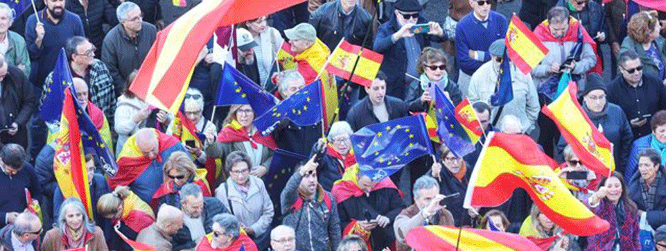 Esta movilización, que se celebra dos días después de que Sánchez haya sido investido presidente del Gobierno, ha sido convocada por más de un centenar de foros y asociaciones cívicas bajo el lema 'No en mi nombre: ni amnistía, ni autodeterminación. Por la libertad, la unidad y la igualdad'.