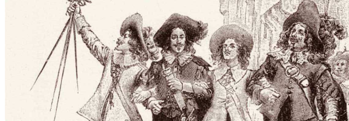 Los tres mosqueteros que creó Alejandro Dumas para que defendieron al Rey y a la veleidosa Reina de Francia contra el malvado Richelieu se han quedado encerrados en el universo de las obras literarias, en el cine y hasta en las versiones perrunas de las series de dibujos animados de la televisión. Los tres eran espadachines consumados y dispuestos a batirse en duelo con las guardia pretoriana del cardenal, el intrigante y poderoso primer ministro. Athos, Porthos y Aramis ya existían antes de que llegara D´Artagnan, pero es gracias al joven gascón cuando alcanzan la gloria. Todo ese universo de ficción novelesca se escribió por capítulos en el diario “Le Siecle” entre marzo y julio de 1844. Salvaron a la Corona y taparon las infidelidades de Ana de Austria. Héroes para el poder y para el pueblo.