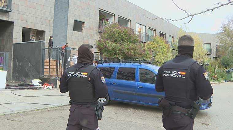 La Policía ante el hotel okupa de San Blas. Imagen, Telemadrid