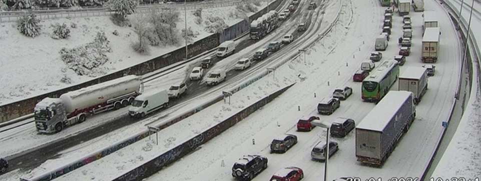 El temporal de lluvia y nieve en la Comunidad de Madrid, especialmente la zona norte y este por el paso de la borrasca Kristin, ha provocado a primera hora de la mañana afecciones a la circulación, con una A-6 en la que centenares de vehículos se han visto atrapados, y al transporte público en la región, principalmente entre las 08.00 y las 12.00 horas.