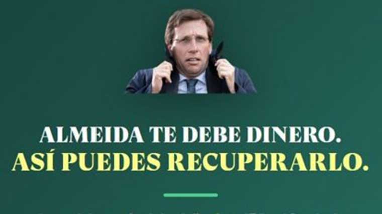 Bajo el lema 'Almeida te debe dinero, así puedes recuperarlo', la formación liderada por Rita Maestre reclama que el regidor no recurra la sentencia, que todavía no es firme, y que reintegre las cantidades cobradas a todos los vecinos.